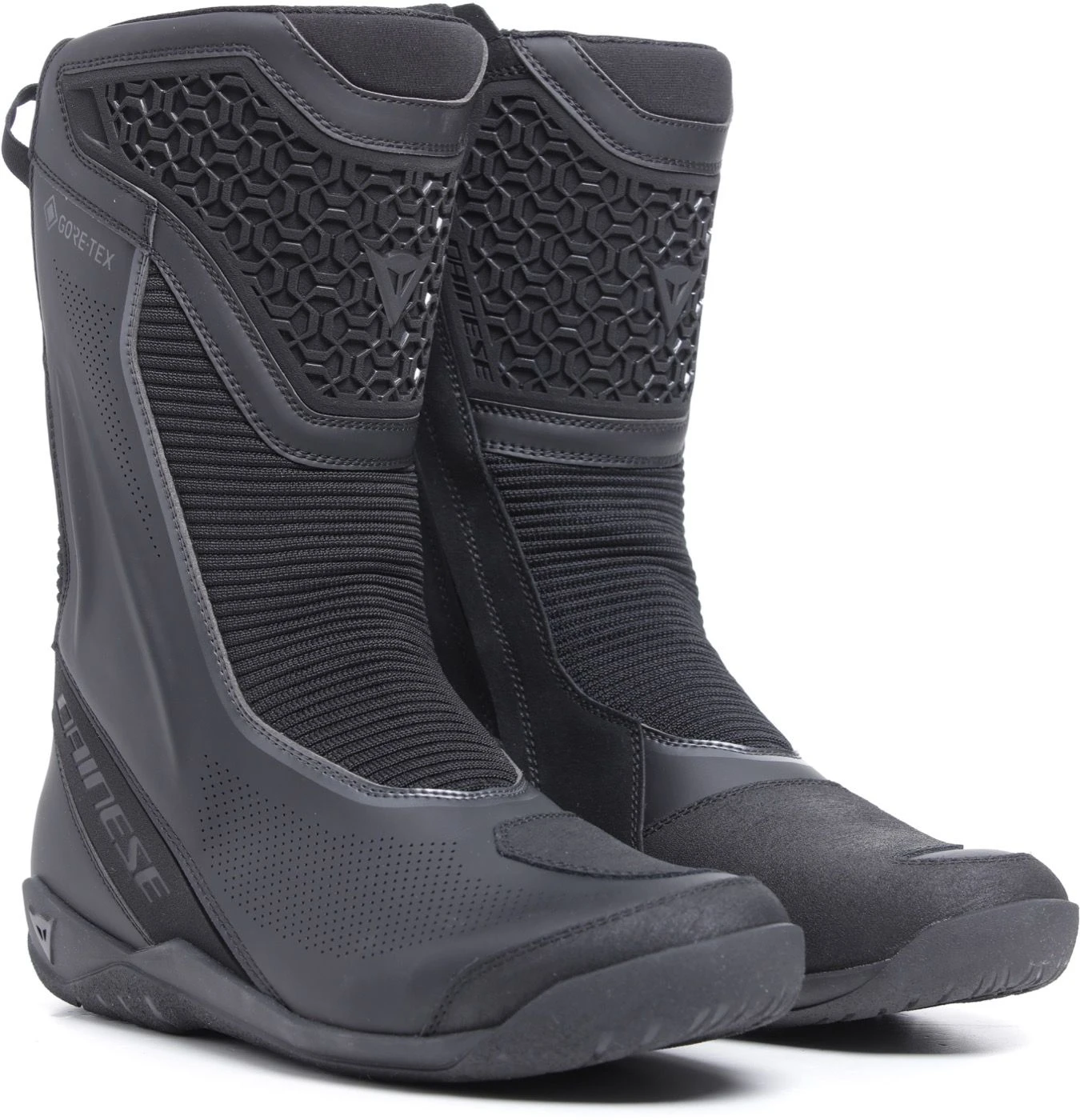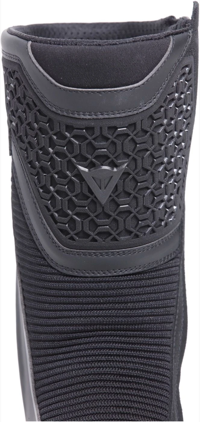 De Dainese Freeland 2 GTX rekent af met het neutrale voorkomen van de meeste touring laarzen. Veroorzaakt door de verfijnde overgang van materialen en het speelse gebruik hiervan en zeker ook de als eerste in het oog springende opengewerkte scheenbeenprotector. Minder opzichtig zijn de onderliggende protectors op de enkels.